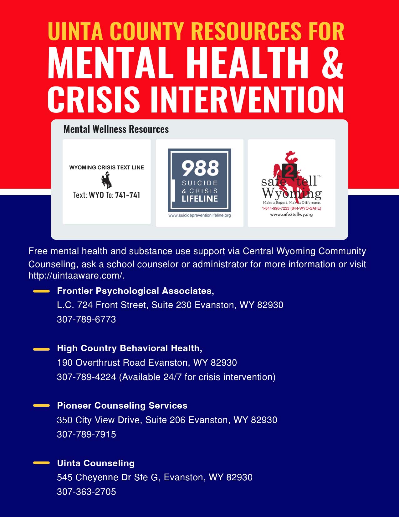 UCSD1 school counselors and the Mental Health Aide will continue to work with families on providing information about other Uinta County community resources based on their need.